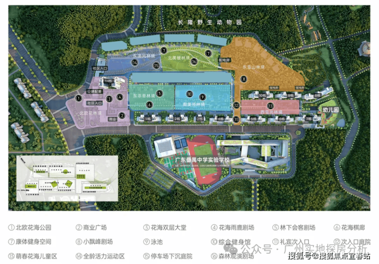 项目自身配建一所9班幼儿园。以及54班(30班小学和24班初中)九年制的公立广东番禺中学实验学校2023年已经正式开学,由长隆集团引进,优先长隆珑翠和瑞麓府人户一致的业主子女就读。