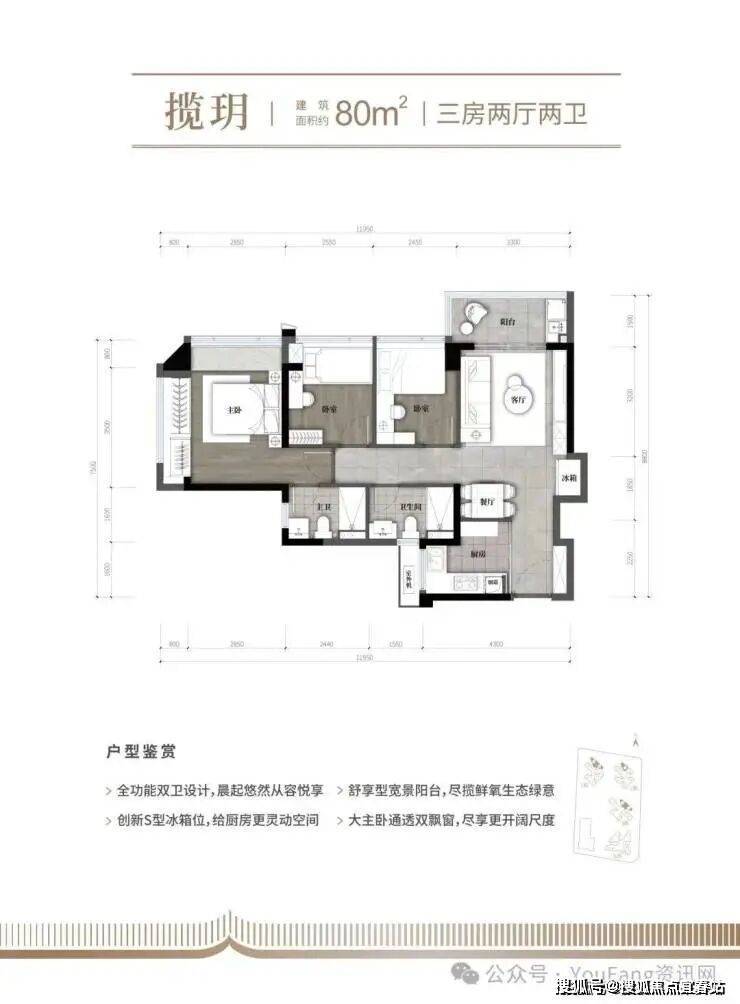 【精妆交付,品质人居】精研打造建面约80-110㎡3房-4房2卫产品,精妆品质交付、配置全屋中央空调;超高得房率,多面宽,大阳台等户型优势,精研购房人群的生活起居,打造光明优选产品,盛载全家人的生活向往。