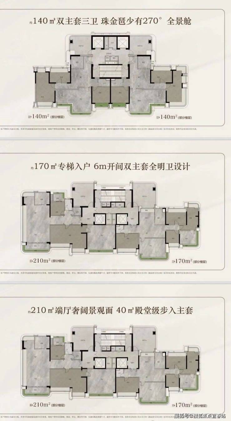 【产品配置】北区2T3/3T4塔楼,南区2T2板楼,建面约120-140-170-210㎡云幕平层;