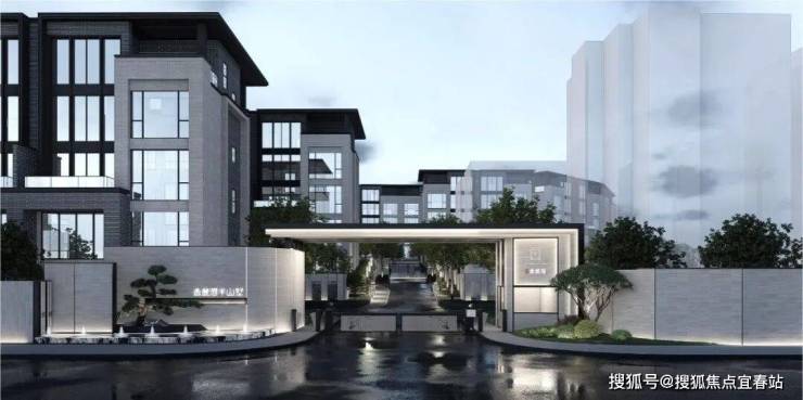 项目入口中轴区,曰“云山在望”,是初识香麓湾的第一站。以门为礼,形似“官帽”,营造山门初开,画卷缓缓开启的东方意境。主入口通道两侧植物依序排开,沿山势步步高升,可见凤凰山的云雾氤氲,引山景入卷。