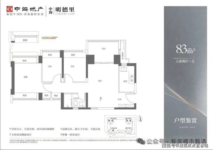 产品面积段:建面约83—113㎡三至四房