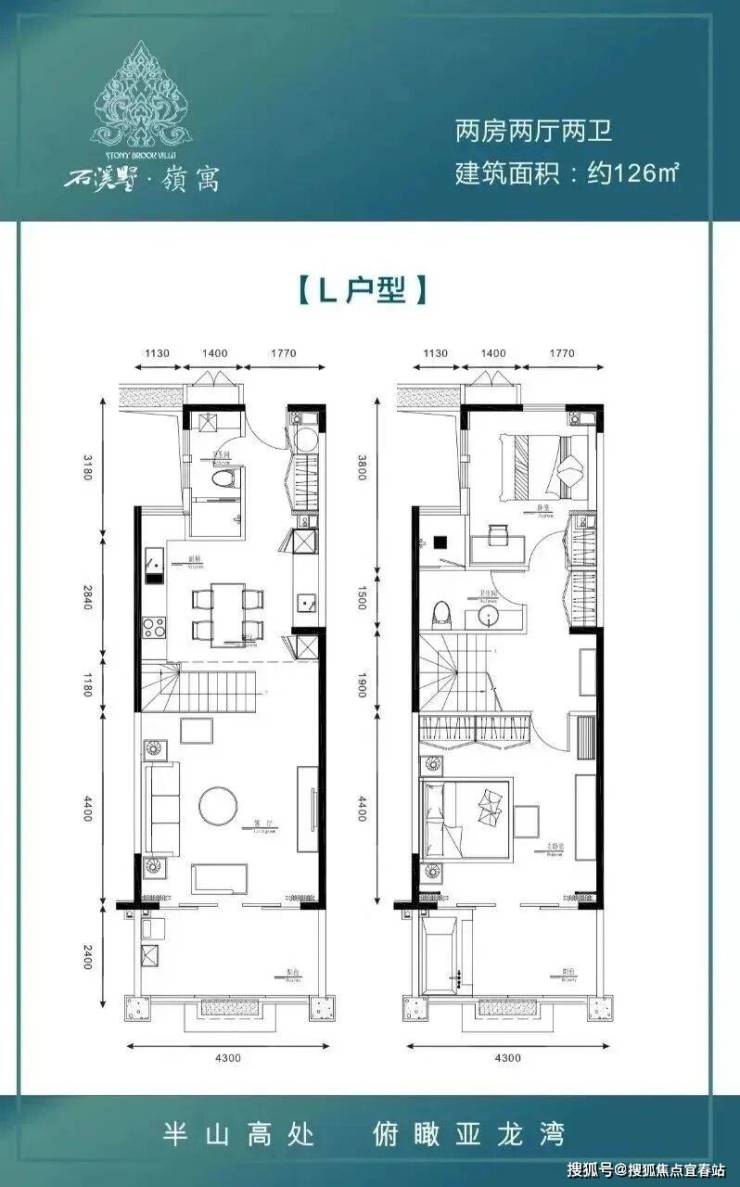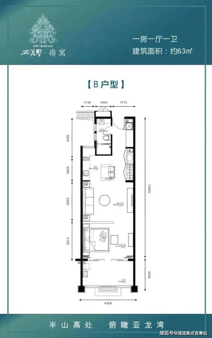在售户型:B户型 约63㎡1房1厅1卫,M、L户型约126㎡2房2厅2卫