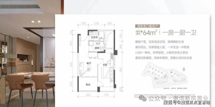 建面约64㎡ 酒店式套房 高拓使用率