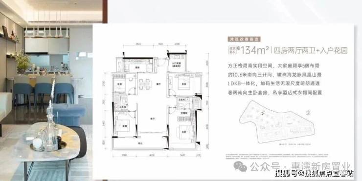 建面约134㎡ 四房两厅两卫+入户花园