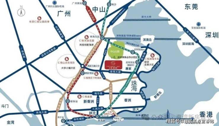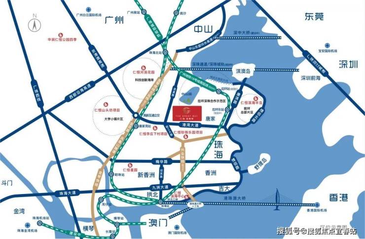 项目拥1站(珠海北站)、3轨(广珠城轨、深珠城轨、广州地铁18号线)、3桥(深珠通道、深中通道、港珠澳大桥)、2快线(兴业快线、金琴快线),湾区超级交通枢纽中心,约30分钟达前海,约1小时达白云机场。
