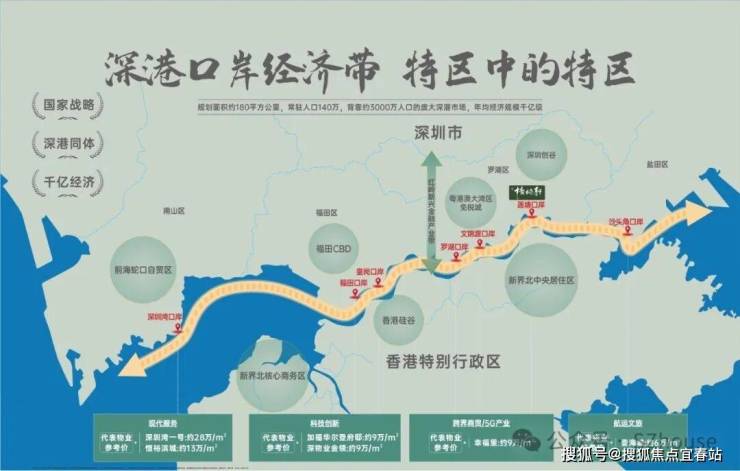 2、京基梧桐轩在深港口岸经济带上,特区中的特区,年均千亿量级经济规模,与前海自贸区、香港北部都会区规划并驾齐驱,成为深港融合前沿的发生地。