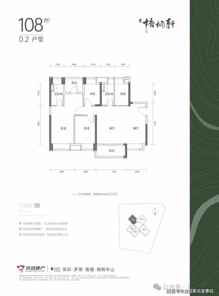 1、 京基梧桐轩在深圳城市半山圈,背靠梧桐山,轻松奢享31平方公里梧桐山天然氧吧。
