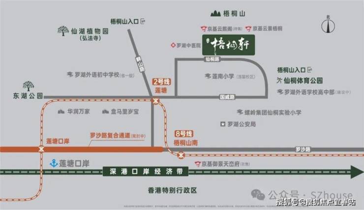 4、 好宜居:紧邻三级甲等医院罗湖中医院,周边仙桐体育公园、仙湖植物园环伺,住在梧桐山下,畅享悠然半山生活。