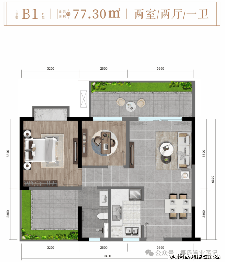 ✨ 6# 楼A3户型约64㎡精致两房两厅一卫