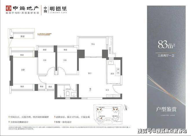 品质美宅:建面约83-113㎡3-4房品智美学住宅,多面宽朝阳,揽清风入怀。