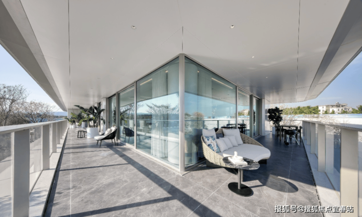 比如建面约342㎡户型,悬挑2.4米L型跑道式阳台,阔绰尺度,挑战极限。