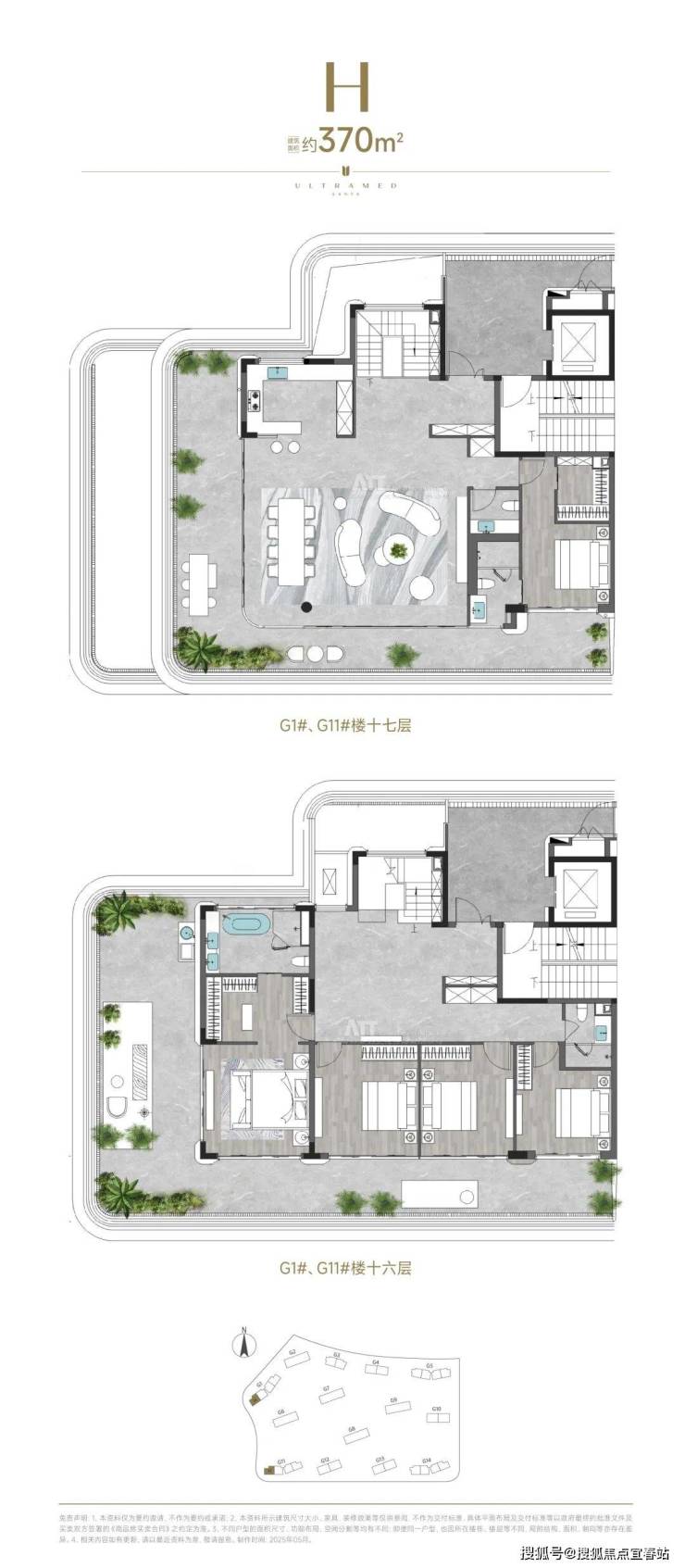 项目建面约342㎡的五套间都市大平层。
