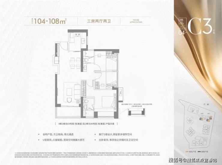 104-108㎡的3房2厅2卫,折后总价415-516万/套,单价3.97-4.76万/㎡。