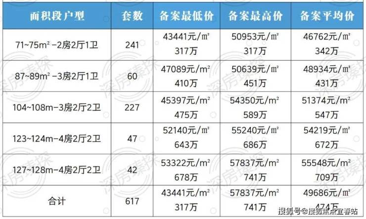 下面是澜汇云境全套的备案价格表,供大家参考。