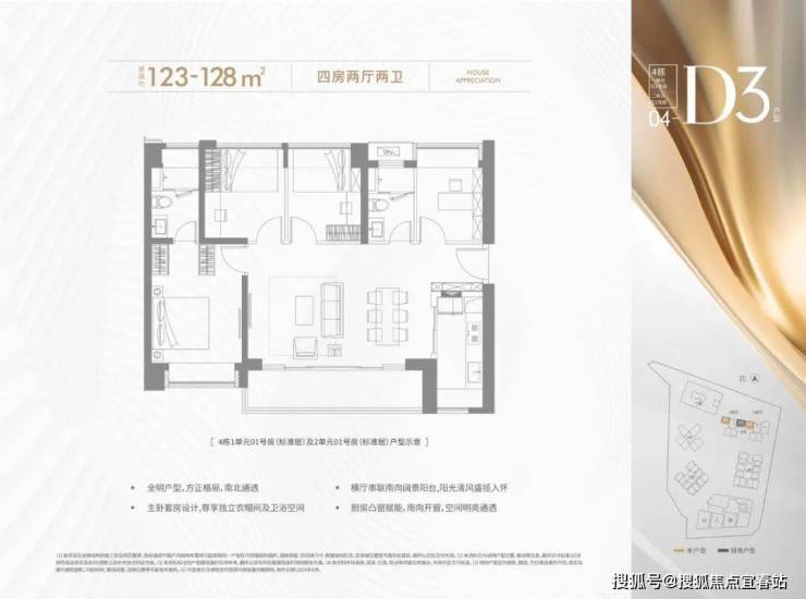 123-128㎡的4房2厅2卫,折后总价563-649万/套,单价4.56-5.06万/㎡。