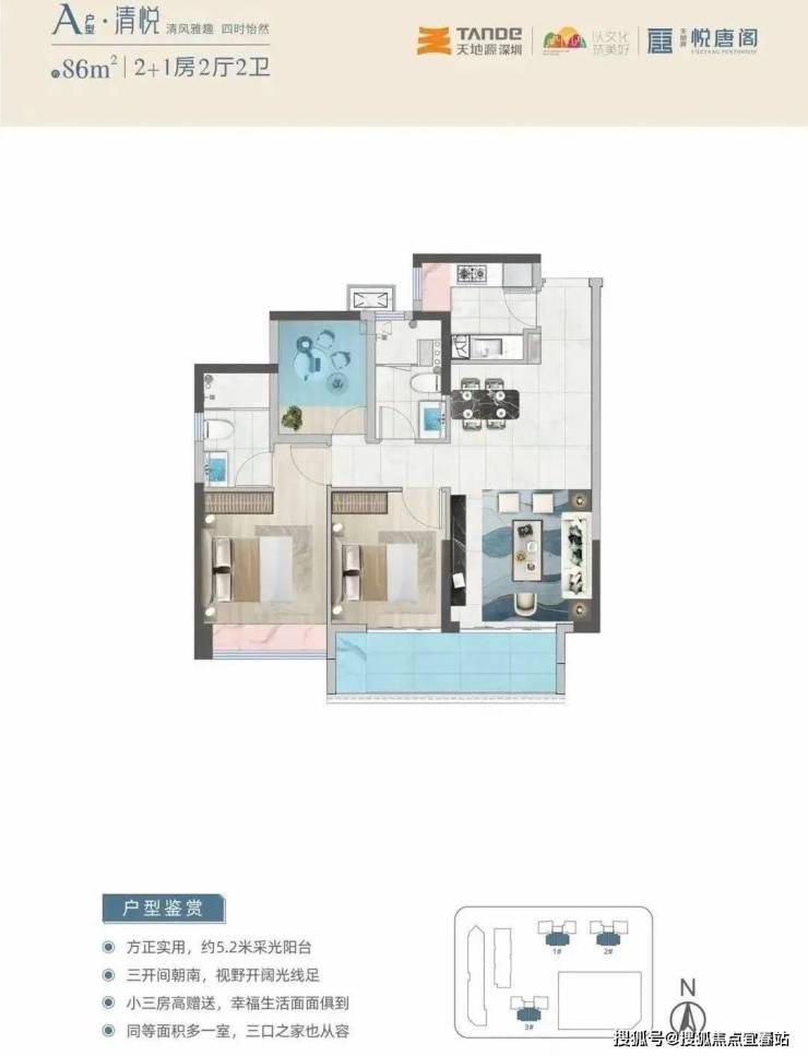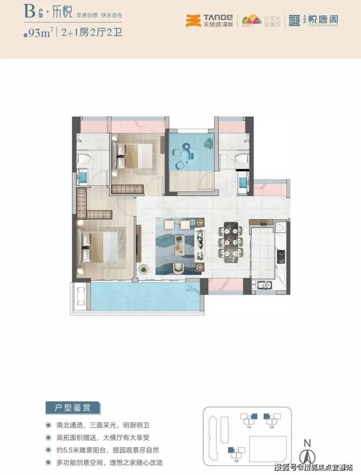 约93平2+1房2厅2卫,可以说是该项目的“王炸户型”!