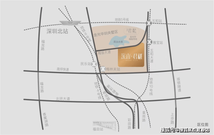 溪山君樾的占位非常特殊,位于福田CBD和龙华CBD的交汇处,也就是深圳的正中心,从地理位置而言,它是龙华盘,但从实质享受的资源配套而言,它也可以算是福田盘。