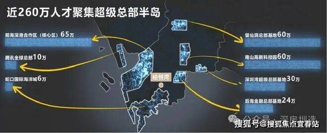 七大全球总部基地串联成湾区资本超核,吸引腾讯、大疆、阿里巴巴等龙头及大批总部企业入驻,未来将汇聚 260 万人才。各基地定位鲜明: