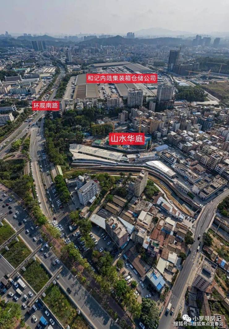 山水华庭周边以工业区,民房居多,楼盘成U字型被民房环绕,项目东侧就是清平快速,高层住宅可能噪音会比较大,往东走约600米就是观澜山水田园旅游文化园;