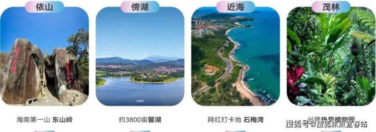 🏜六大自然天赋生态环境🏜⛰依山:背靠海南第一山——东山岭,风光秀丽,气势超群,赋予秘密花园“山”的神韵。🏝傍湖:紧邻4A景区兴隆热带花园,悠享3800亩馨湖,背山面湖,打造东南亚热带风情园林。🌊亲海:邻近石梅湾,集碧海、青山、白沙、奇石、岛屿、椰林于一体,景色怡人。 🌳茂林:世界上仅存的两片青皮林之一,4000多年历史,于此日夜聆听自然的传奇。♨温泉:“世界少有,海南无双”——兴隆温泉,泉水富含矿物成分,极具康养温疗功效。🍀沛氧:森林覆盖率高达约65%,负氧离子含量约8000个/cm³,是一线都市的300倍,天赐康养胜地。