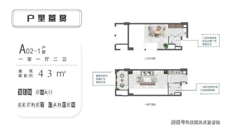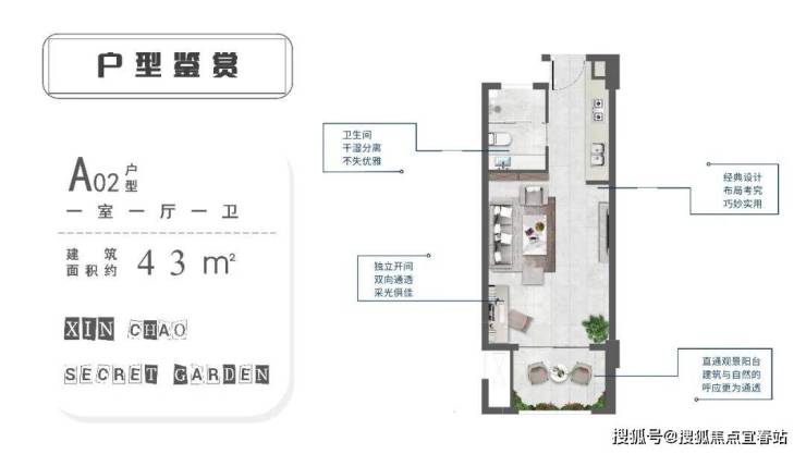 🔍【户型鉴赏】〖A02户型〗建筑面积:约43㎡户型格局:一室一厅一卫