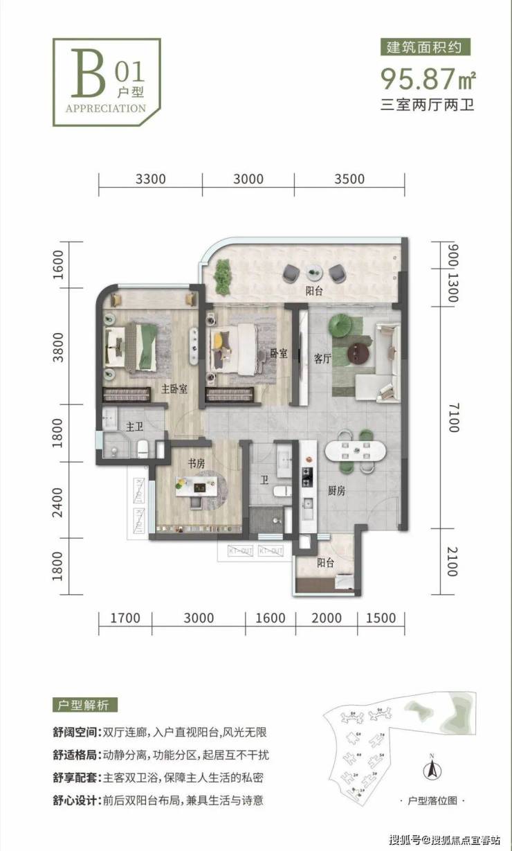 建筑面积 约95.87㎡/97.11㎡ 3室2厅2卫