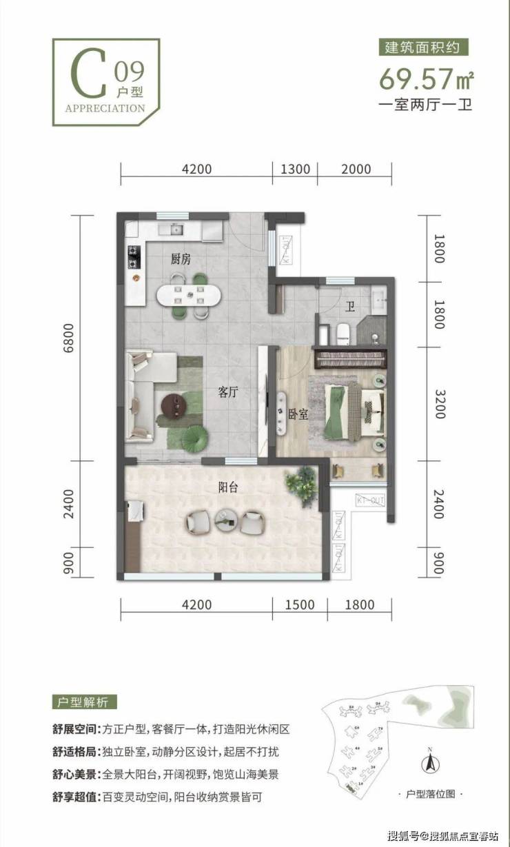 建筑面积约69㎡一房一厅