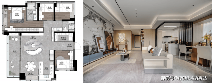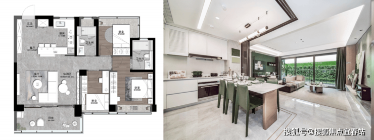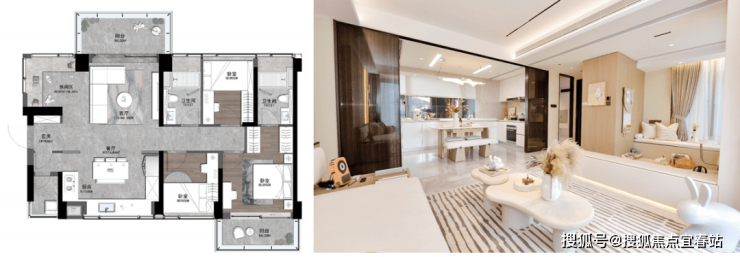 约108㎡三房两厅两卫:近50㎡创新LDKB一体化客餐厅、全南朝向、3+X多元场景空间