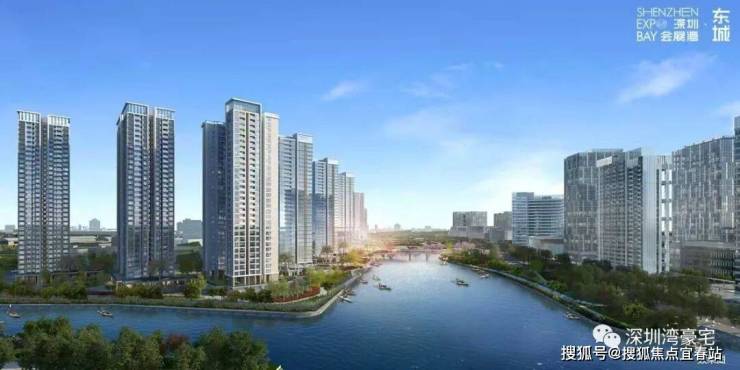 6、 河海双景会展湾·东城,占据全球最大会展中心门户位置,总建面约57万㎡,俯揽6.4km会展河一线水景、远眺深圳西部海湾,悦享公园里有居所的滨水生活。