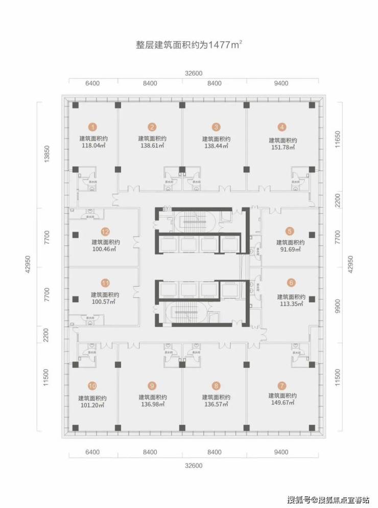 标准层面积:约1477㎡