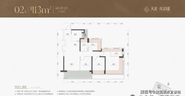 113平4房主力户型,大部分房源的采光和景观视野较好。