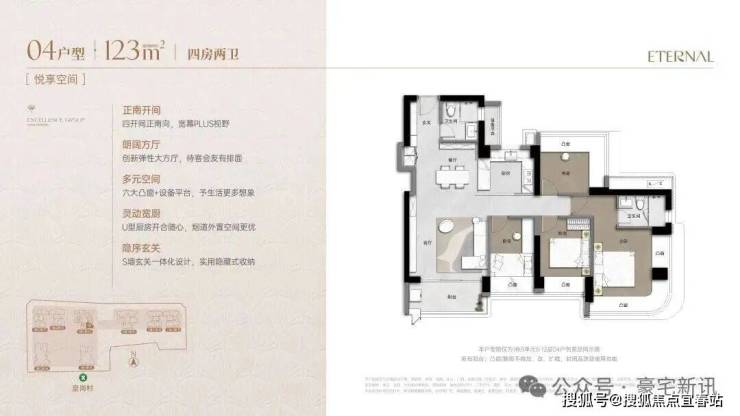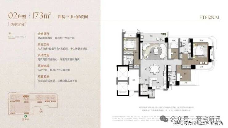 超高使用率90%+:通过“弹性方厅”(可变空间)、设备平台外拓、多飘窗实现。