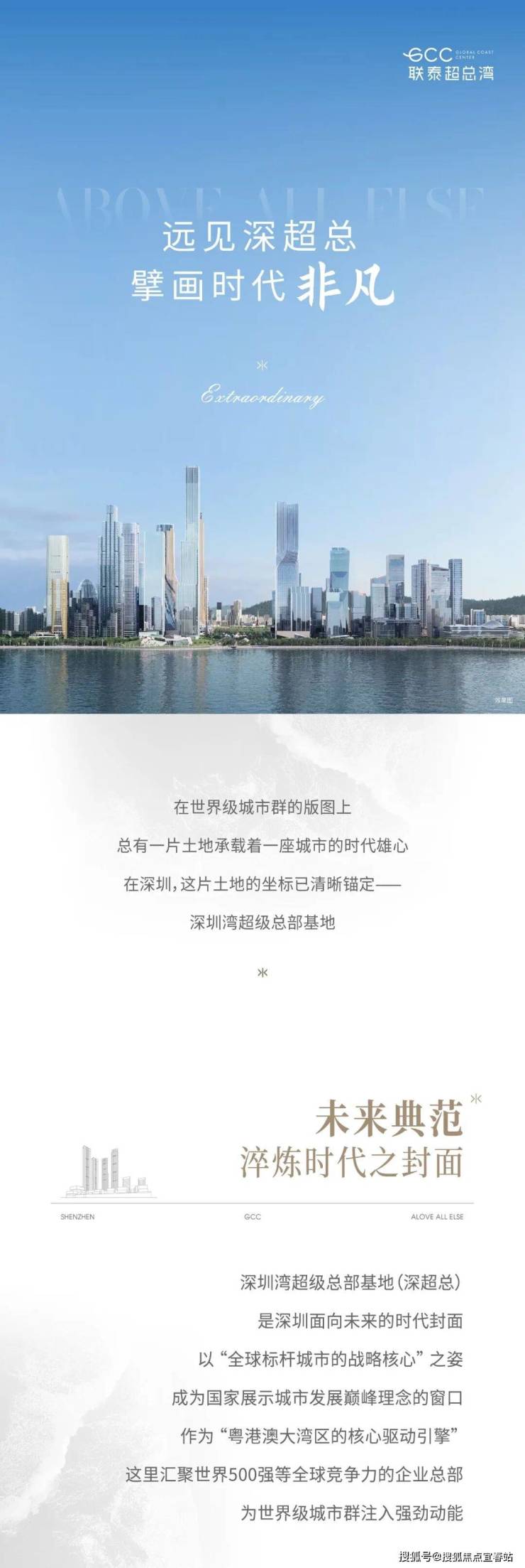 联泰超总湾:占据深超总CBD地段龙头位置,坐拥深圳湾一线海景与永久湖景,主打300㎡以上大平层,直面企业总部圈层客群,具备顶级资产配置属性。
