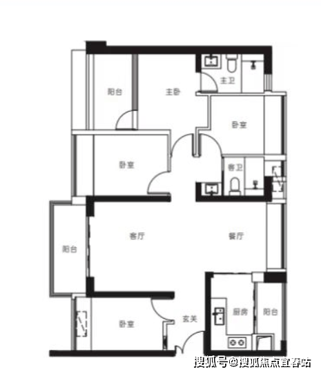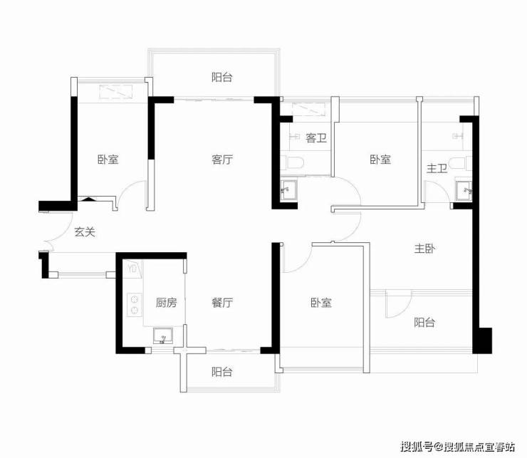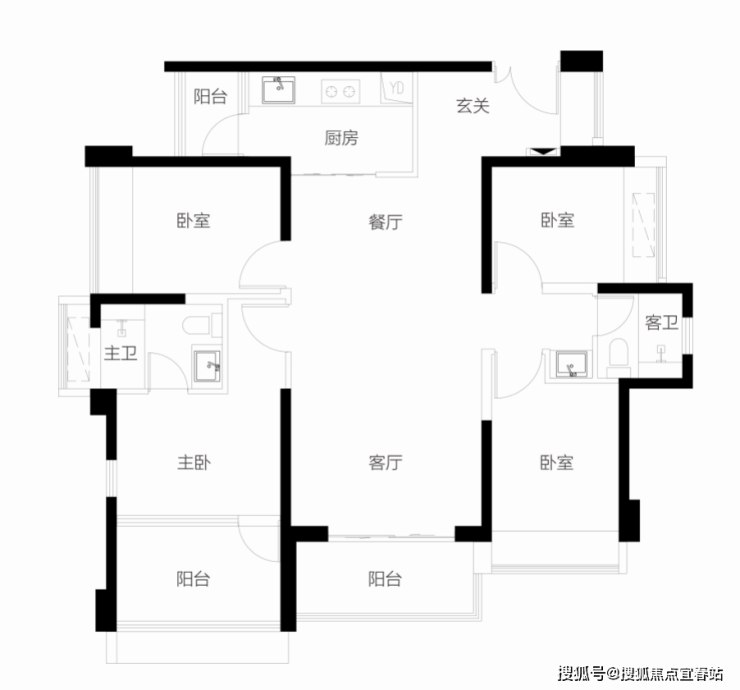 【3栋4栋06户型118㎡4房2卫】 客厅朝西带阳台,2房朝西,1房朝南,1房朝北