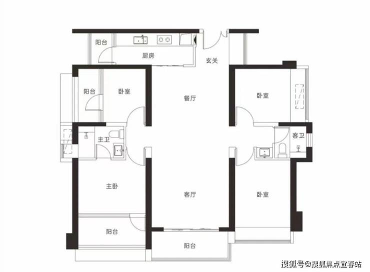 【115-118㎡4房2卫户型】 双龙抱珠设计,主要生活空间 ,看中心园林景观舒适四房,三面采光,全明户型
