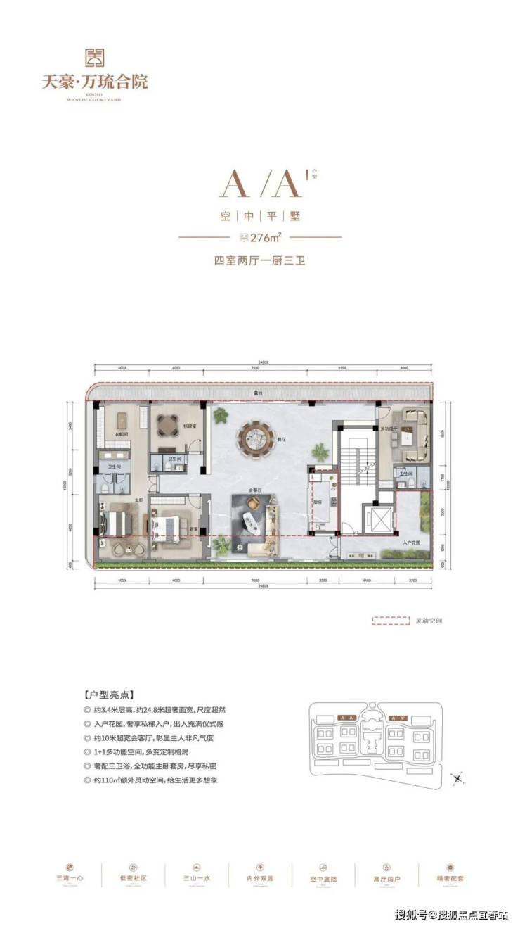 产品户型:建面约230-246㎡花园式合院,建面约276㎡空中平墅