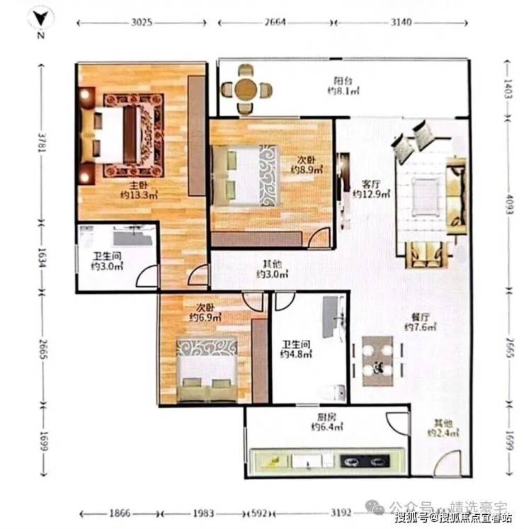 层高:大平层3.45m、叠墅3.6m
