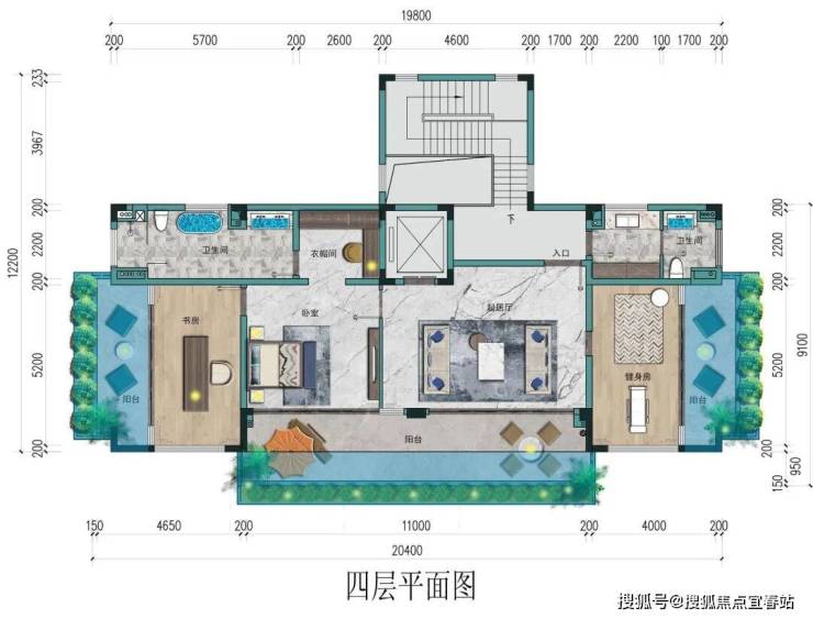 四层:(建面约:160㎡,赠送面积:45㎡)