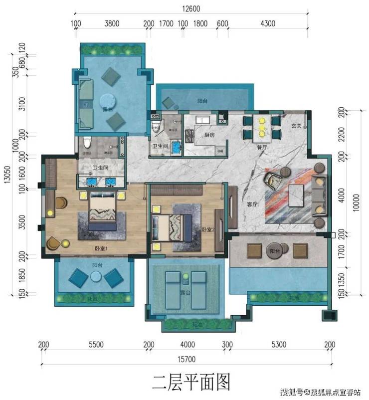 项目引入天然温泉,富含多种矿物质,水温56.6度,打造养生温泉泡池