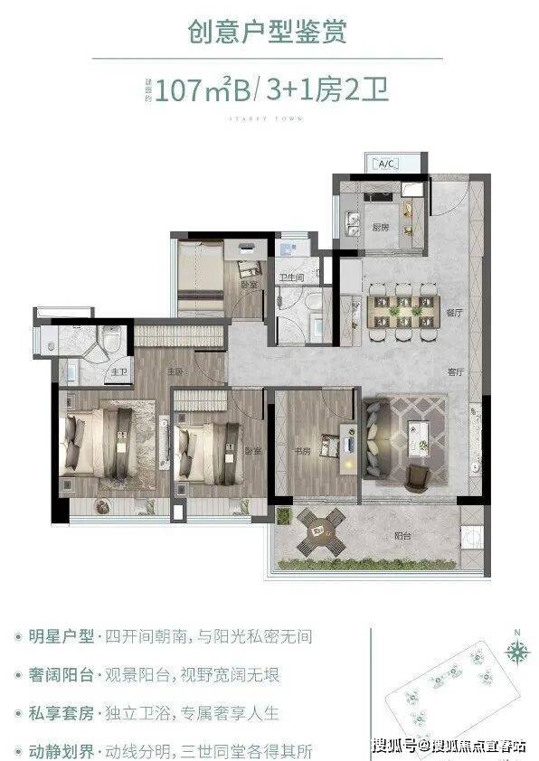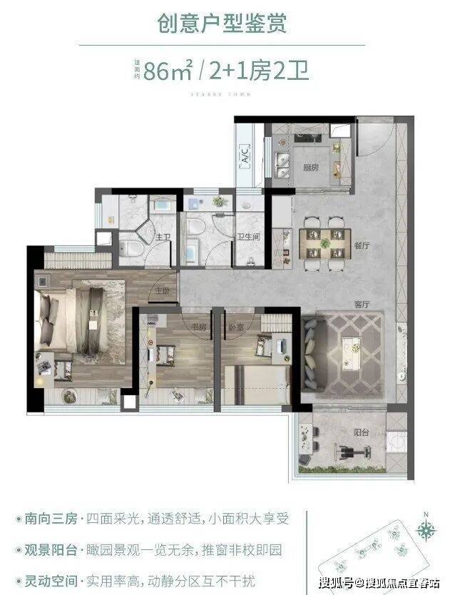 畅享双面宽观景阳台,飘窗拓宽功能空间