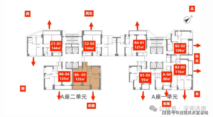 梯户比:1单元4梯5户,2单元4梯4户