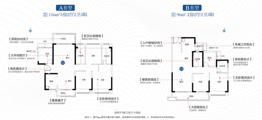 产品上设计,建面约96㎡低总价三房采用全明设计,主卧带套间;建面约116㎡的高性价比四房为全新升级户型,以双阳台全对流设计,适合三代同堂而居;建面约133㎡的大三房南北对流,有高拓灵活空间;建面约143㎡四房南北双阳台对流,为双套房设计。