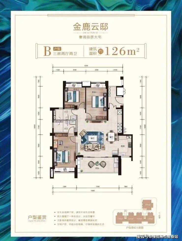 全明户型、功能分区明确、尽情体验高尚生活;