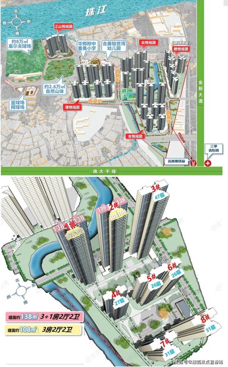 项目依珠江后航道而建,坐拥4.5公里曼妙江岸,邻约8万㎡江山帝景高尔夫,私享约2.6万㎡自然山体,约3万㎡中轴滨河景观带引珠水入园,社区内享绝版江、山、园、高尔夫等多重叠景。