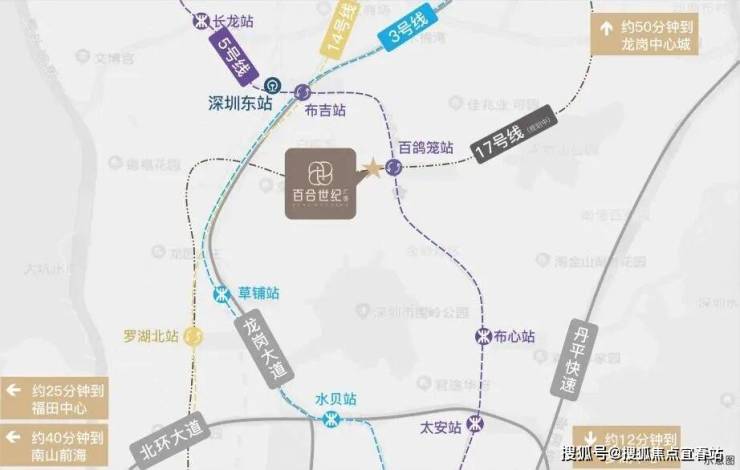 项目作为双线地铁上盖物业,5号线百鸽笼站与社区无缝接驳,在建中的17号线也将在此站接驳。1站可达布吉(深圳东站)换乘3/14号线,1站抵罗湖,4站至福田,7站达深圳北;1公里接驳龙岗大道,2.5公里直达丹平快速,水官高速、北环大道构建立体通勤网络。