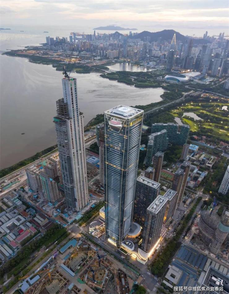 SIC 超级总部中心立于深圳湾超级总部基地的超级城市底盘之上,是片区的首发之作,也是深超总基地内业态复合度最高的综合体项目,总体量达到60 万平方米,包括358 米超甲级写字楼、深圳最高的香格里拉酒店、高端圈层社交平台“SIC65 商务会所”、深圳首个科技赋能的购物中心以及高端公寓等。
