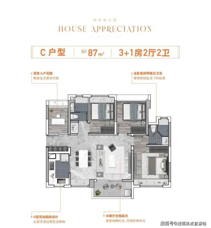 建面约87㎡面积下设计的3+1房2厅户型 ,就是生活家的居住哲学。南向阔景阳台 ,享受阳光和清风的不请自来。百变的入户花园 ,对于购房者来说,多一个房间意味着生活可以多出N种选择,书房茶室、儿童天地...只要你想就有任意可能!