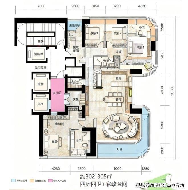 210㎡4房2厅2卫: 305㎡4+1房2厅3卫