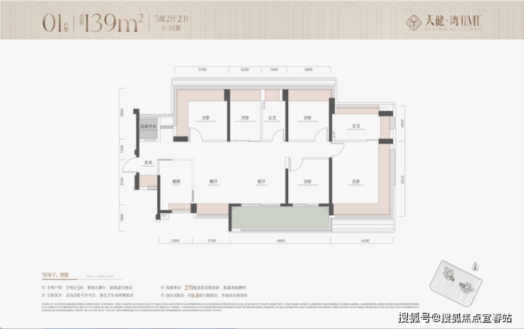 01户型,建面约139㎡,5房2厅2卫(下图)