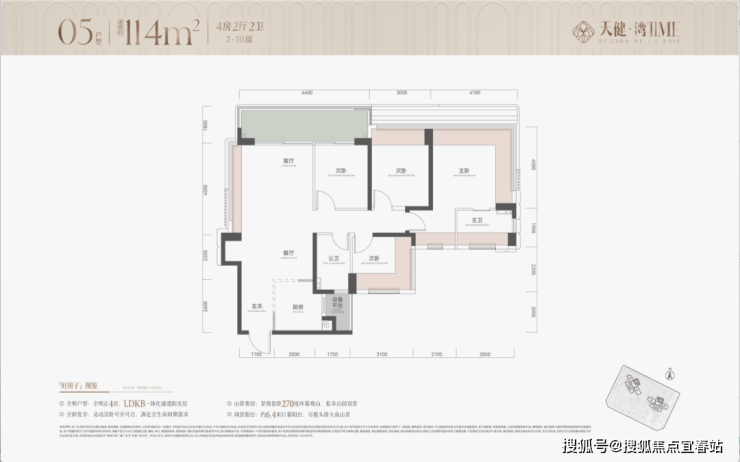 05户型,建面约114㎡,4房2厅2卫(下图)